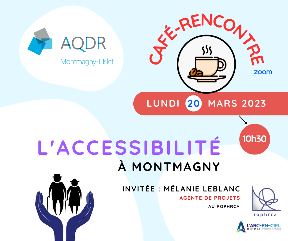 Rejoignez-nous pour en discuter et partager vos expériences ce lundi 20 mars à 10h30 avec notre invitée Mélanie Leblanc, agente de projets pour le Regroupement des Organismes de Personnes Handicapées Région Chaudières-Appalaches ( ROPHRCA-nouvelle page ).
