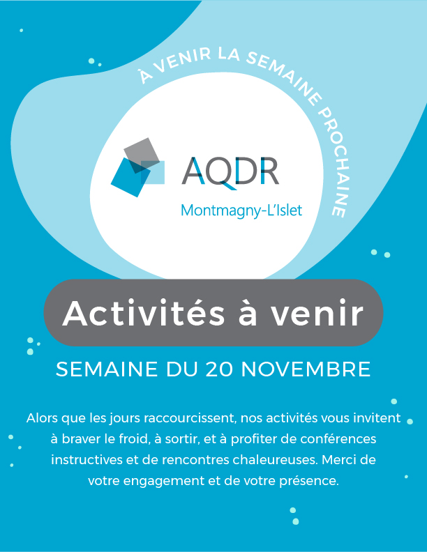 Activités de la semaine du 20 novembre 2023 - AQDR MONTMAGNY-L'ISLET